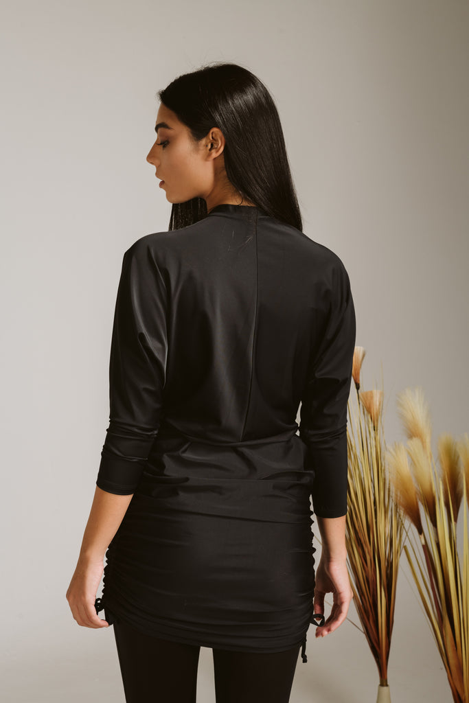 The Lady's Alexandria Dresses come with Adjustable side gatherings for a customised length, a belt for a defined waist and features kimono sleeves for when a looser upper-body fit is needed. Like all of our swimwear, this dress comes with a built-in bra with optional cups.