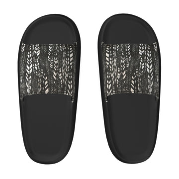 Introducing Black Leaves Sliders, our ultra-soft and lightweight pillow sliders – the perfect combination of comfort and style. Designed with a trendy oversized shape, Black Leaves sliders feature a plush, spongy sole that delivers unmatched coziness with every step. The textured, real leather printed vamp showcases the elegant Blue Sands print, adding a touch of sophistication to your look. Whether you're lounging by the pool, enjoying a holiday retreat, or simply relaxing at home, these sliders are your ultimate go-to footwear. Crafted with care from handpicked real printed textured leather, Black Leaves sliders are water- and scratch-resistant, ensuring durability and long-lasting wear. Available in a variety of sizes, they guarantee the perfect fit for everyone.